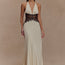 Tauchen Sie ein in eine Welt voller Glamour und Anziehungskraft mit dem Cara | Spitzen- und Luxus-Halterkleid! Dieses atemberaubende Maxikleid ist die perfekte Verkörperung von raffinierter Sinnlichkeit und zeitlosem Luxus. Spüren Sie den weichen, fließenden Stoff, während der schmeichelhafte Halter-Ausschnitt, der tiefe V-Ausschnitt und die exquisite Spitzenapplikation an der Taille eine Silhouette schaffen, die sowohl gewagt als auch unvergesslich ist. Perfekt für Gala-Events, Abendveranstaltungen oder besondere Anlässe, bei denen Sie einen bleibenden Eindruck hinterlassen möchten.