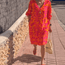 Tauchen Sie ein in den freien Geist der Boho-Ära mit dem Dhea | Bohemian-Tunikakleid! Dieses Kleid ist ein Kunstwerk für sich, das mit seinem lebhaften orangefarbenen und pinkfarbenen Print sofort ins Auge sticht. Der weite, luftige Schnitt und das weiche Material sorgen für unübertroffenen Komfort, während der elegante V-Ausschnitt und die zarten Ärmel-Details dem Kleid eine feminine Note verleihen. Ob bei einem Spaziergang am Meer oder einem entspannten Tag in der Stadt.