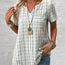 Setze auf lässigen Stil und modernen Komfort mit dem Khloe | Lässigen V-Ausschnitt-T-Shirt mit gestreiftem Karo-Muster. Jetzt bestellen und deinen Look mit einem frischen Twist vervollständigen!
