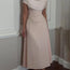 Das Lia | Schulterfreie Kleid mit Perlendetails besticht durch seinen eleganten Schnitt und die feinen Perlenapplikationen. Perfekt für besondere Anlässe oder festliche Events bringt es Glamour und femininen Stil in deine Garderobe.