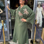 Tauchen Sie ein in luxuriöse Bohème-Atmosphäre mit dem Rayle | Eleganten Boho-Kaftan-Kleid, das die perfekte Balance zwischen Komfort und Eleganz schafft. Dieses fließende, lange Kaftan-Kleid in einem satten Olivgrün besticht durch seine aufwendigen, bestickten Blüten, die dem Kleid eine feminine und künstlerische Note verleihen. Der V-Ausschnitt und die weiten Ärmel sorgen für eine luftige Silhouette, die sowohl elegant als auch entspannt wirkt. Ob für einen besonderen Anlass, einen entspannten Tag im Resort oder einen stilvollen Abend, dieses Kleid ist ein absolutes Statement-Piece.