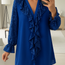 Schmeichelnder Rüschenkragen – Der romantische Ruffle rahmt einen sanften V-Ausschnitt, der deinem Outfit eine feminine Note verleiht, ohne den Komfort zu beeinträchtigen.